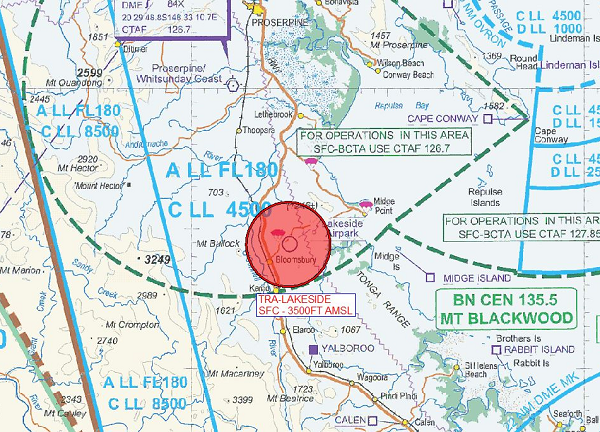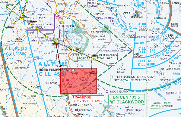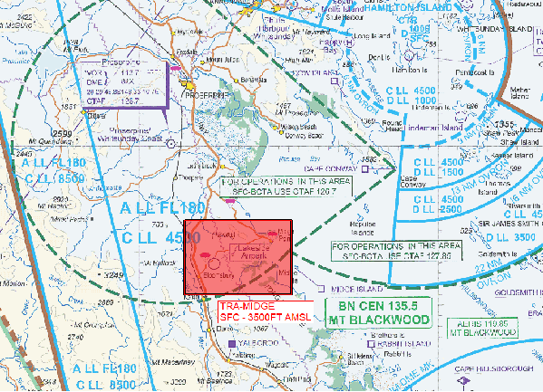 TRA-Midge-Point affects the use of multiple Proserpine (YBPN) instrument approach procedures (IAP) and their associated missed approach paths. Of note: