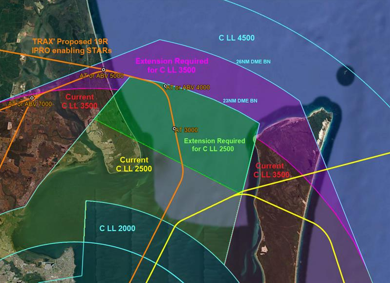 Increasing the size of the lower limit (LL) 2500 feet (FT) and 3500 FT Class C steps, predominantly over the northern waters of Moreton Bay, will facilitate the International Civil Aviation Organization (ICAO) ruleset requirements for runway 19 independent parallel runway operations (IPRO) at Brisbane airport and reduce noise impacts on residential areas.