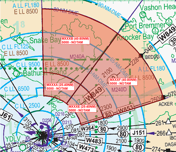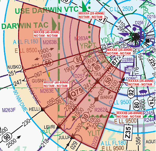 Reapportionment of the M263A western boundary to a 40NM radius Darwin to align with the other changes proposed in this advisory notice: