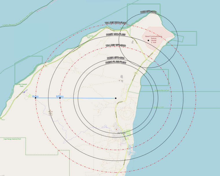 Exmouth aerodrome is located approximately 8.9 n miles south of the proposed centre of all airspace and approximately 3.22 n miles from the southern boundary of R125B. It services the local community and provides for aeromedical evacuation in the event of a serious accident or illness occurring in the area. Exmouth aerodrome is located outside the 3 n miles assessment area, implementation of these TRAs are unlikely to have any impact on flight operations at Exmouth aerodrome.