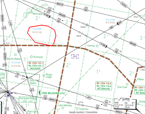 Lateral Limits: The TRA is centred on -32.795133° (32° 47' 42.48"S), 142.792231 (142° 47' 32"E) and is an oblong shape approximately 39nm East-West, and 26nm North-South.