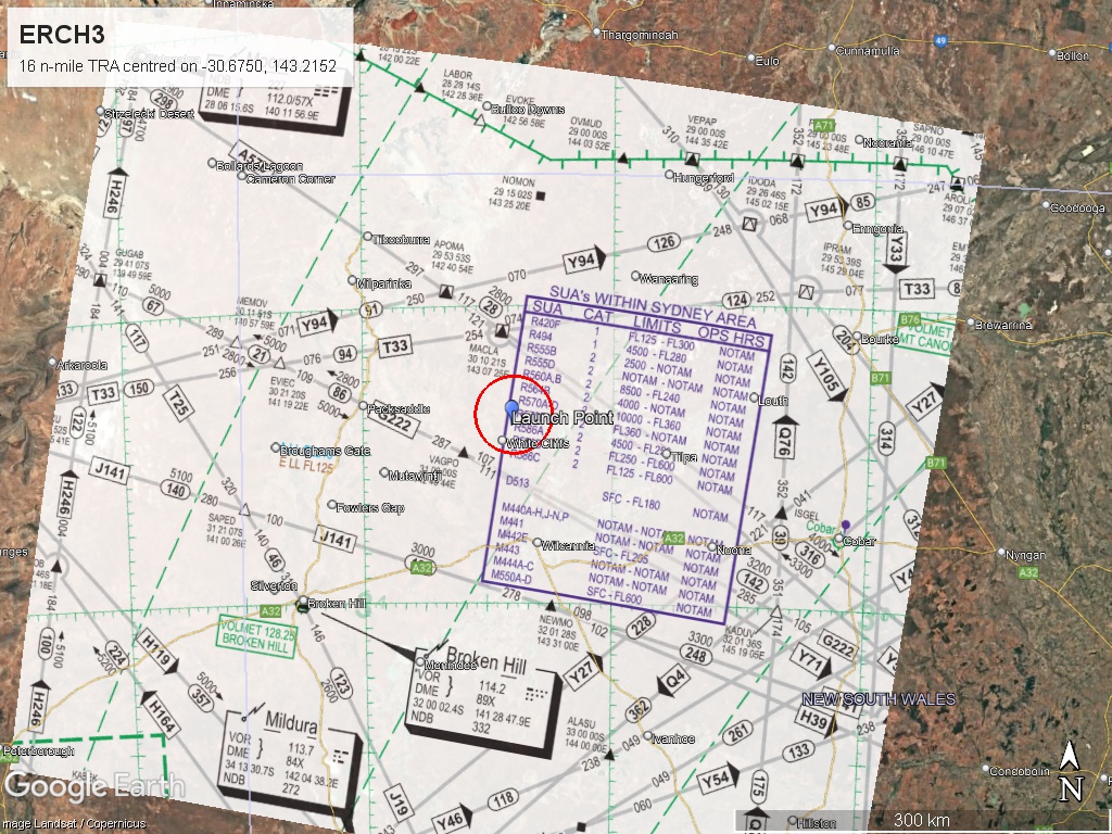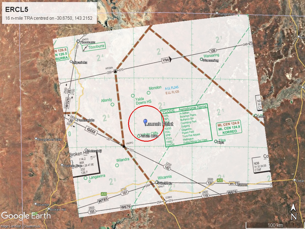 Endeavour Aerospace is launching a sounding rocket with the UNSW Rocketry Team to 72,750 feet (ft) above mean sea level (AMSL) from Caradoc Station, which is 12 nautical miles (n mile) NNE of White Cliffs, NSW.