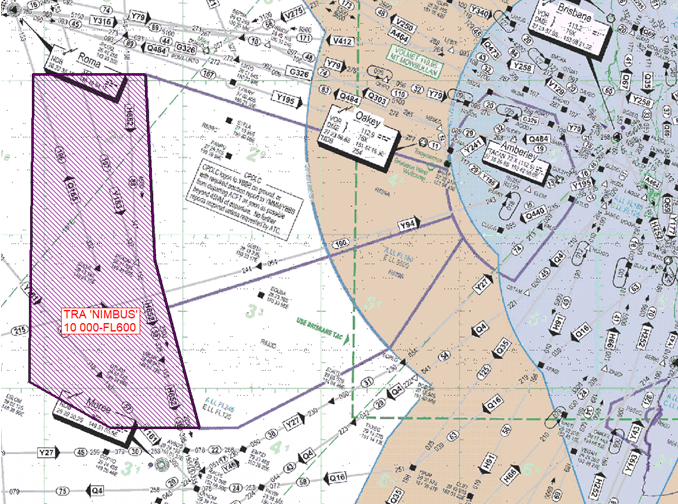 During NOTAM activation periods, access to TRA ‘NIMBUS’ by non-exercise aircraft will not be available except in cases of a declared emergency, radio failure or participating in activities for the preservation of life and property (SAR, MED, POL or FFR).
