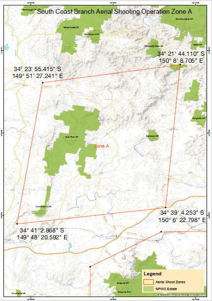 Aerial shooting operations are planned to be undertaken by the NPWS, please refer to the maps below for the following operational zones: